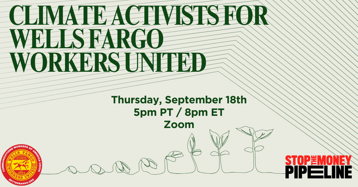 And finally, Stop the Money Pipeline and the WFWU union have scheduled an online training for climate activists and others who want to learn about the unionizing project. It is scheduled for this coming Thursday, September 18, at 8 pm EDT.